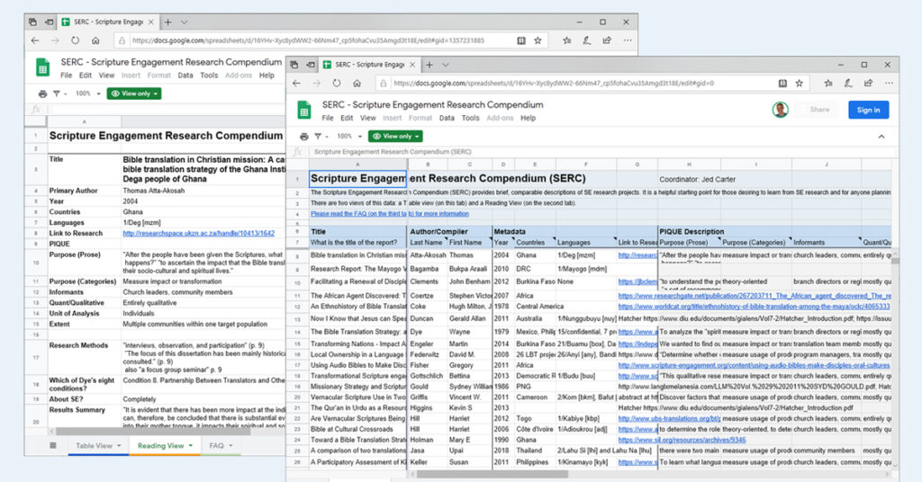 - Country Profiles: detailed summaries per country of Bible access realities and needs