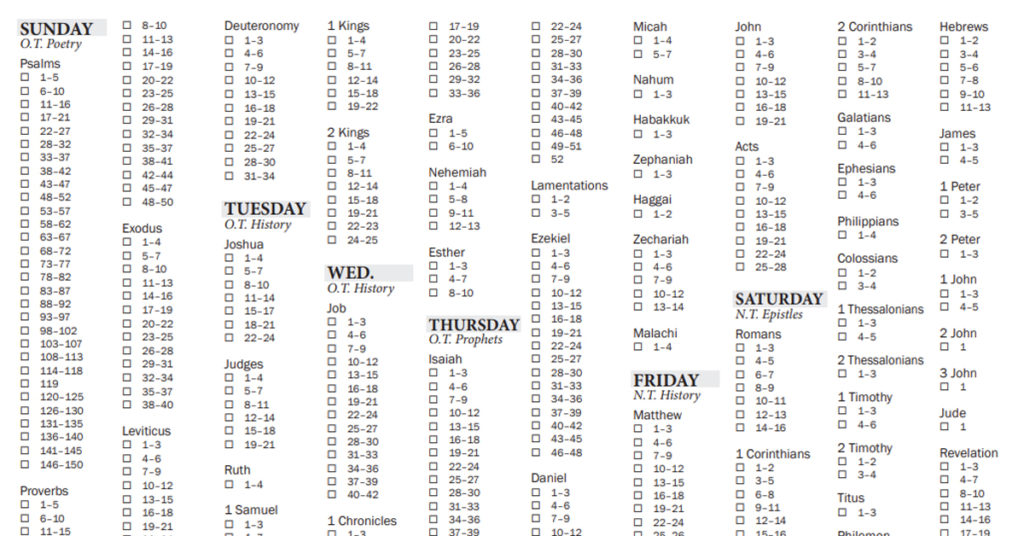 • View the plan as a calendar, as a list, by week and by Bible book.