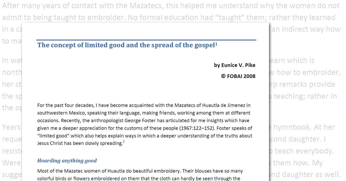 The Mazatecs of Mexico hold this belief. One result is that they are reluctant to teach people directly for fear they will lose their own knowledge, so all teaching is indirect. This article looks at how this affects the spread of Christianity, and the important role missionaries, hymns, gospel recordings and mother-tongue Scriptures have in spreading the gospel. It also outlines Scriptures that speak of God’s unlimited goodness and kindness.