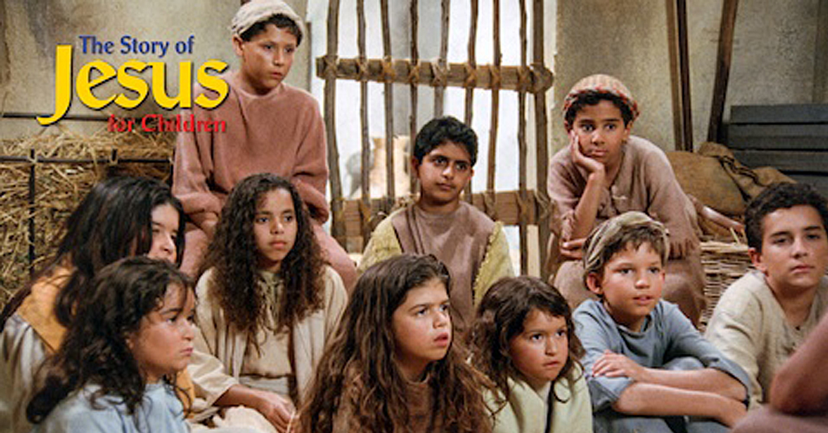 “The Story of Jesus for Children” uses 40 minutes of the original “JESUS” film and integrates into the drama 22 minutes of new footage with children who might have lived in A.D.30. The video allows children to hear and see the whole story at once, answering questions in clear and concrete terms, and providing fast action. It ends with an invitation, by a child to children, to accept Christ into their lives.