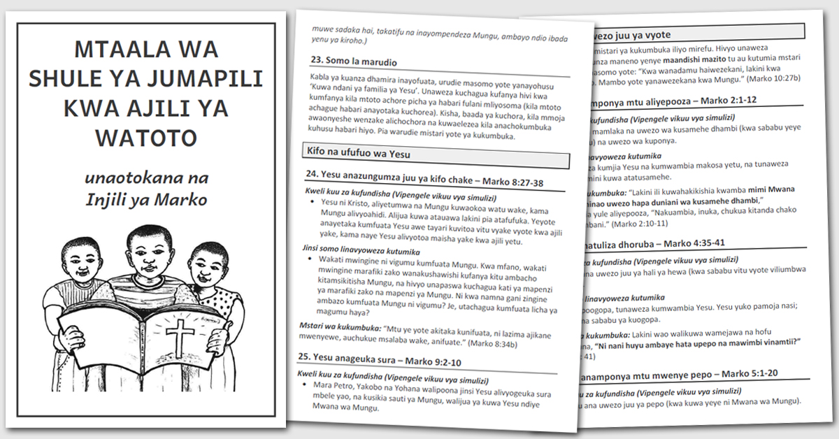 It is hoped that a teacher may use this in conjunction with Mark’s gospel in their language. It is based on Mark as this is often the first gospel to be translated by Bible translation teams in Tanzania.