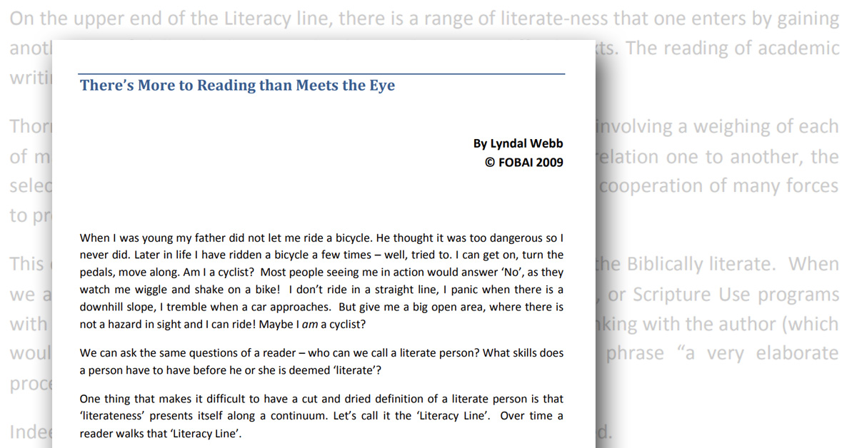 Lyndal Webb argues that it is not enough to train people in basic reading skills. In order for them to be able to better engage with the Scripture they read, they need to move along the ‘Literacy Line’, developing higher literacy skills.