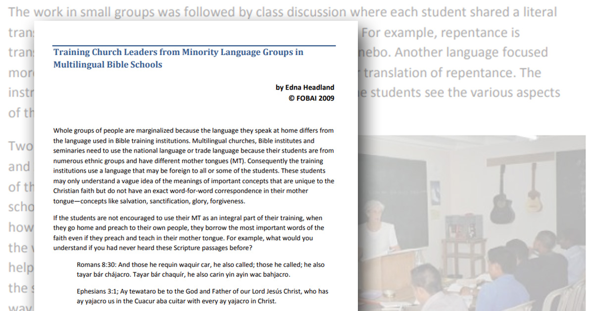 Training Church Leaders from Minority Language Groups in Multilingual Bible Schools