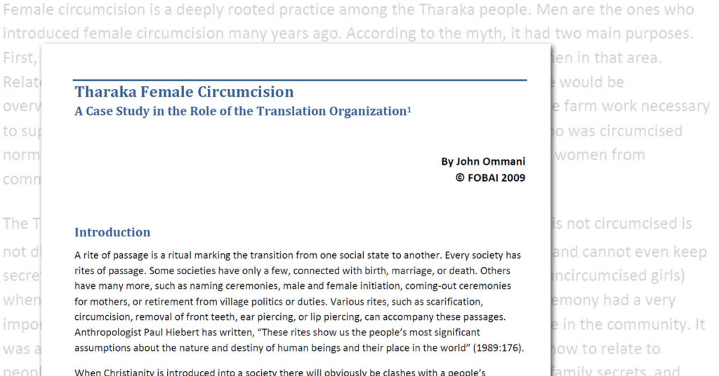 When the Bible remains silent about certain cultural features, the Church... should assist the Christians to think through their traditions by digging deeper. In the Tharaka society of Kenya, female circumcision has held a prominent place. In recent years Christian…